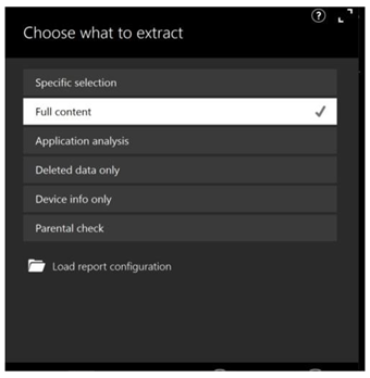 The software provides us two options : Logical Extraction & Camera and Screen Capture. We click on the Logical Extraction method, which is the good approach for modern apple watches. In the extraction configuration step, the option “ Full Content ” we selected to ensure comprehensive acquisition across all supported artifact categories.