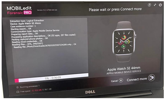 Forensic analysis of smartwatch data primarily relies on specialized tools like Mobile edit, with its effectiveness varying based on the smartwatch model and the chosen extraction technique. In our study we do extraction with the help of Mobile edit Forensic Version 9.1.0.25120. This mobile forensic tool was chosen because forensic analysts frequently utilize it to conduct their forensic investigations. Additionally, Because of its superiority in recovering a variety of data from mobile devices, including deleted data, the MOBILedit program was selected. Because of this feature, investigators can retrieve vital evidence from smartphones and tablets that might not otherwise be available. In cybersecurity situations, legal litigation, and criminal investigations, its value is immeasurable Akintola (2025). MOBILedit Forensic Express effectively extracts 0.75% of evidence from Android smartphones in body shaming cases Safitri et al. (2023) Mobile edit Forensic Pro (with the Smartwatch Kit) was used for data extraction. This tool supports Apple Watch Series 0–5 and SE (1st/2nd gen) via a specialized micro-USB adapter Compelson Labs (2025). For Series 5, we used the Series 4/5 adapter cable.
